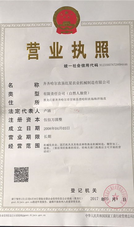 齊齊哈爾農(nóng)墾紅星農(nóng)業(yè)機械制造有限公司